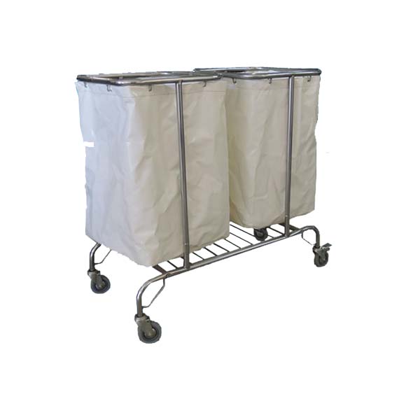 CHARIOT À LINGE 1 SAC ET 2 PLATEAUX CHROMÉS